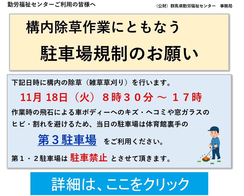 当センターは勤労者の福祉増進を図ることを主な目的として群馬県が設置したものです。